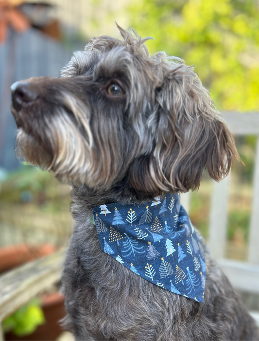 Blue Holly/Blue Trees Reversible Dog Bandana
