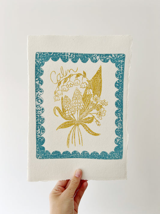 ‘Calm’ Truth Posy Original Lino Print