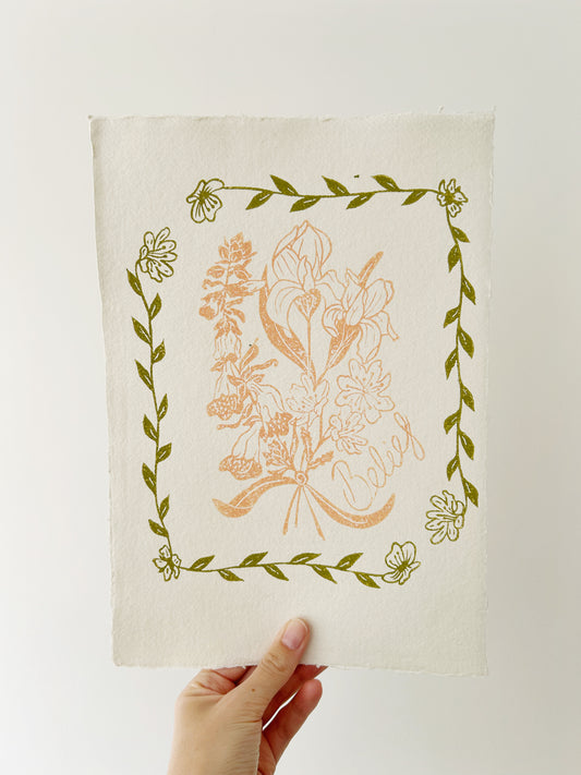 ‘Belief’ Truth Posy Original Lino Print