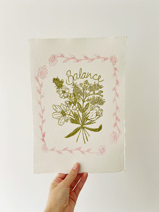 ‘Balance’ Truth Posy Original Lino Print