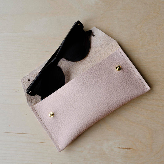 Pale Peach Leather Double Stud Glasses Case