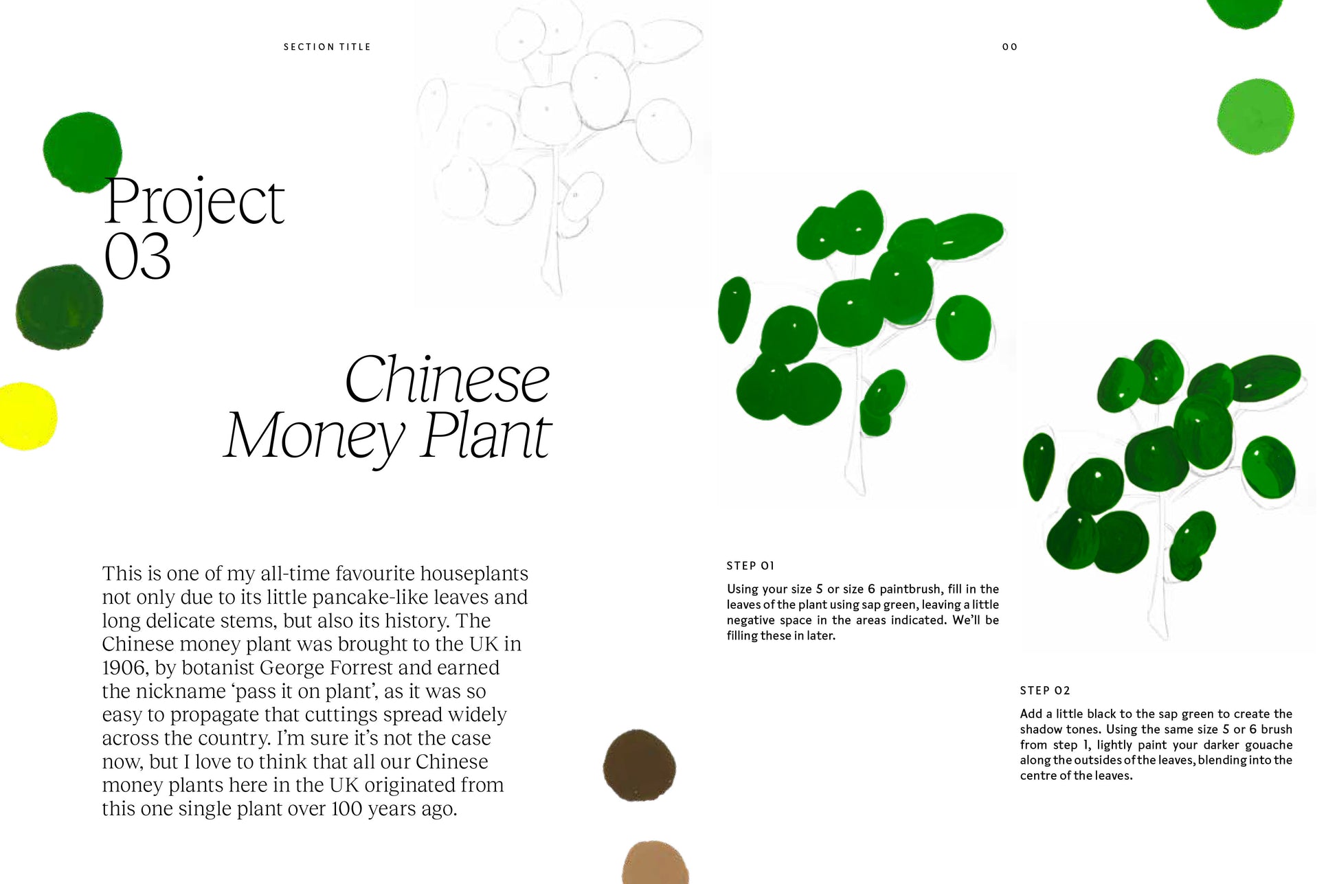 From leaves and houseplants to flowers and fungi, these fifty 15-minute projects, inspired by nature, encourage you to explore painting in a relaxing way. Each project can be completed in no more than six steps and includes practice pages, colour swatches and helpful hints to make light work of making art. There is a brief introduction on how to sketch out your paintings, but the book also contains traceable templates, so you can fully focus on the process and pure joy of painting.