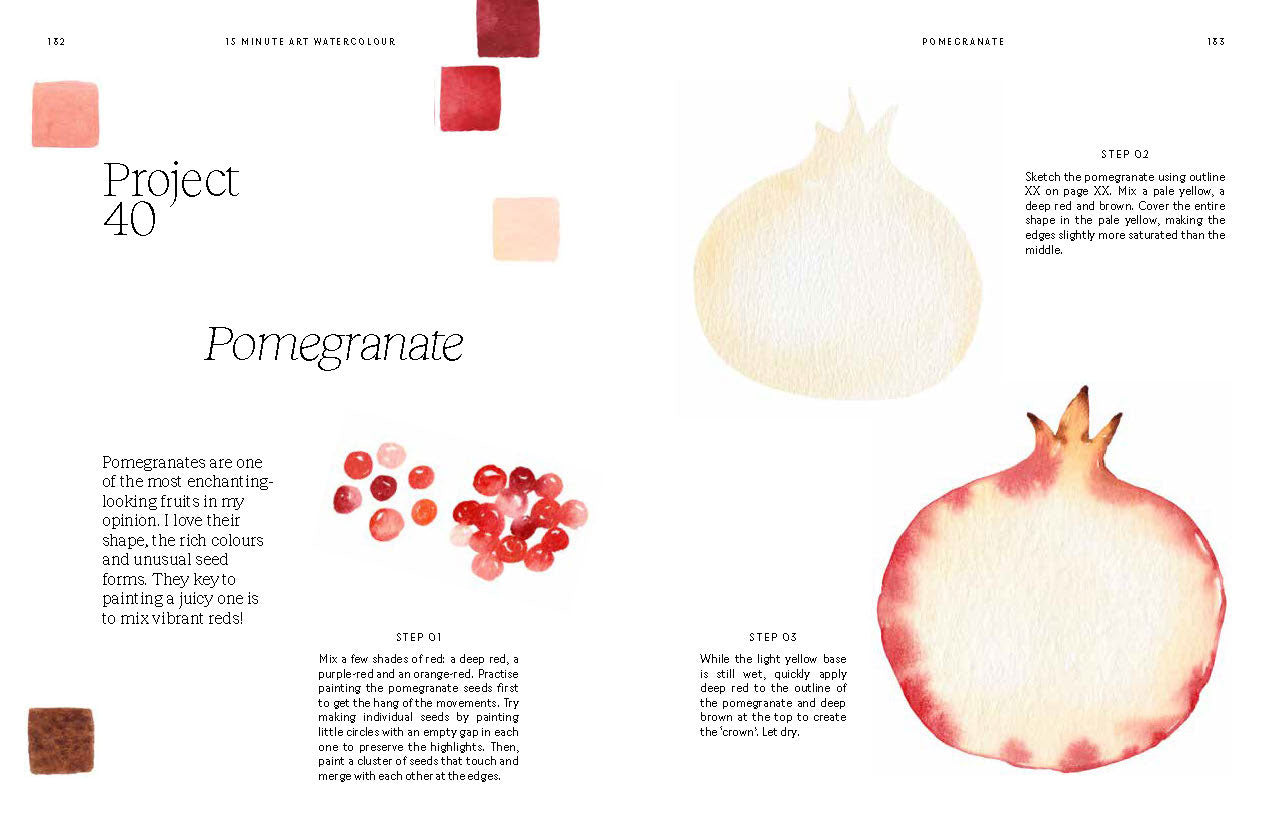 From fruits and fish to flowers, animals and patterns, illustrator Jola Sopek encourages you to explore the art of watercolour painting in a relaxing, free and fun way. Each project can be completed in no more than six steps and includes practice pages, colour swatches and useful hints. With traceable templates of all 50 projects, the book will help you get over the fear of the blank page and proves that watercolour painting doesn’t have to be intimidating.