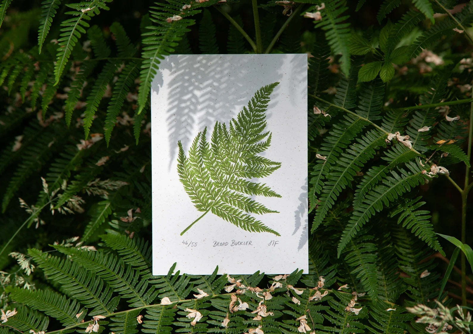 This beautiful A5 fern linocut print is part of the 'Woodland' series by Suffolk artist Hannah Farthing. Inspired by the plant life found in the woodlands of the British Isles.