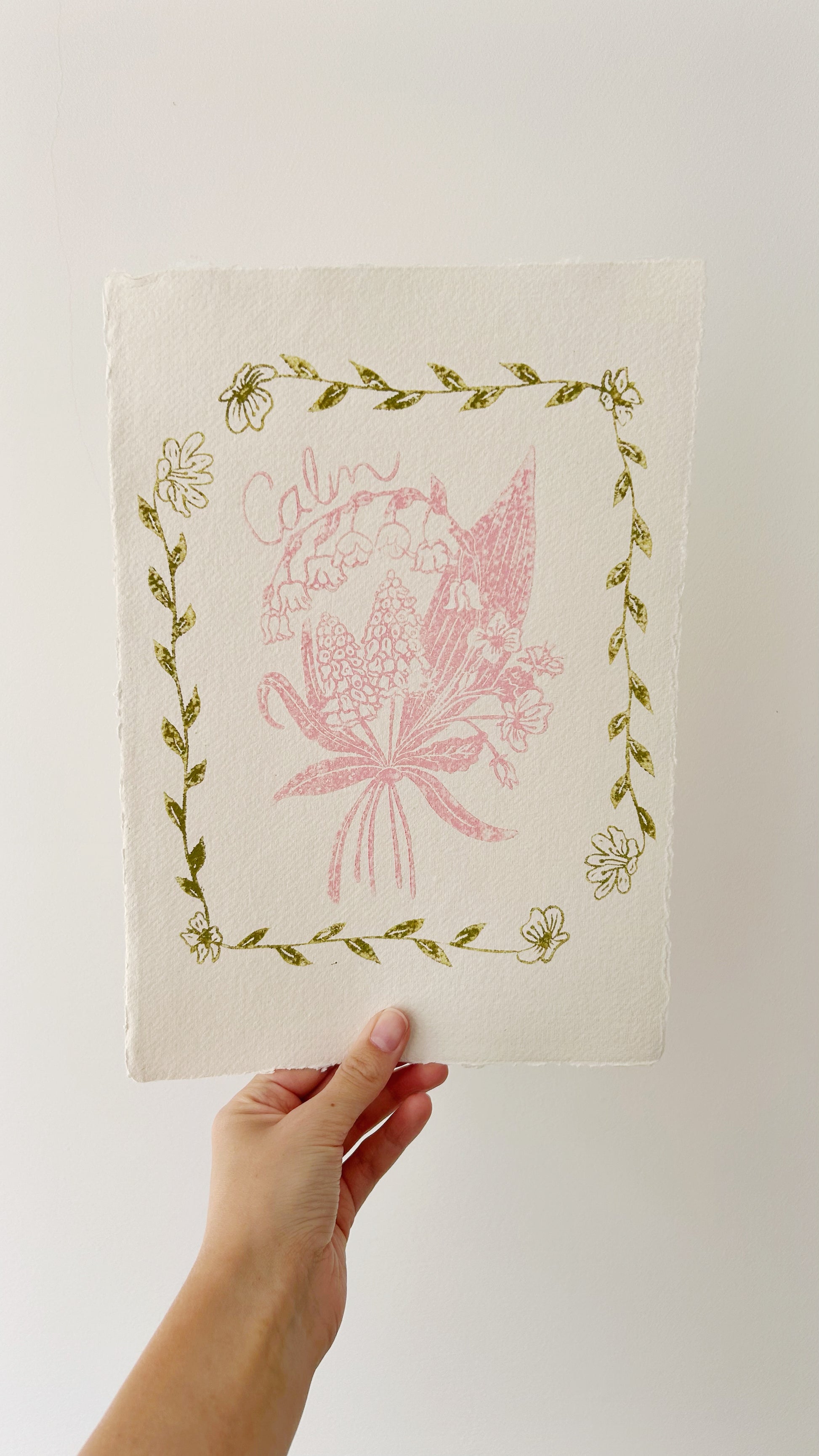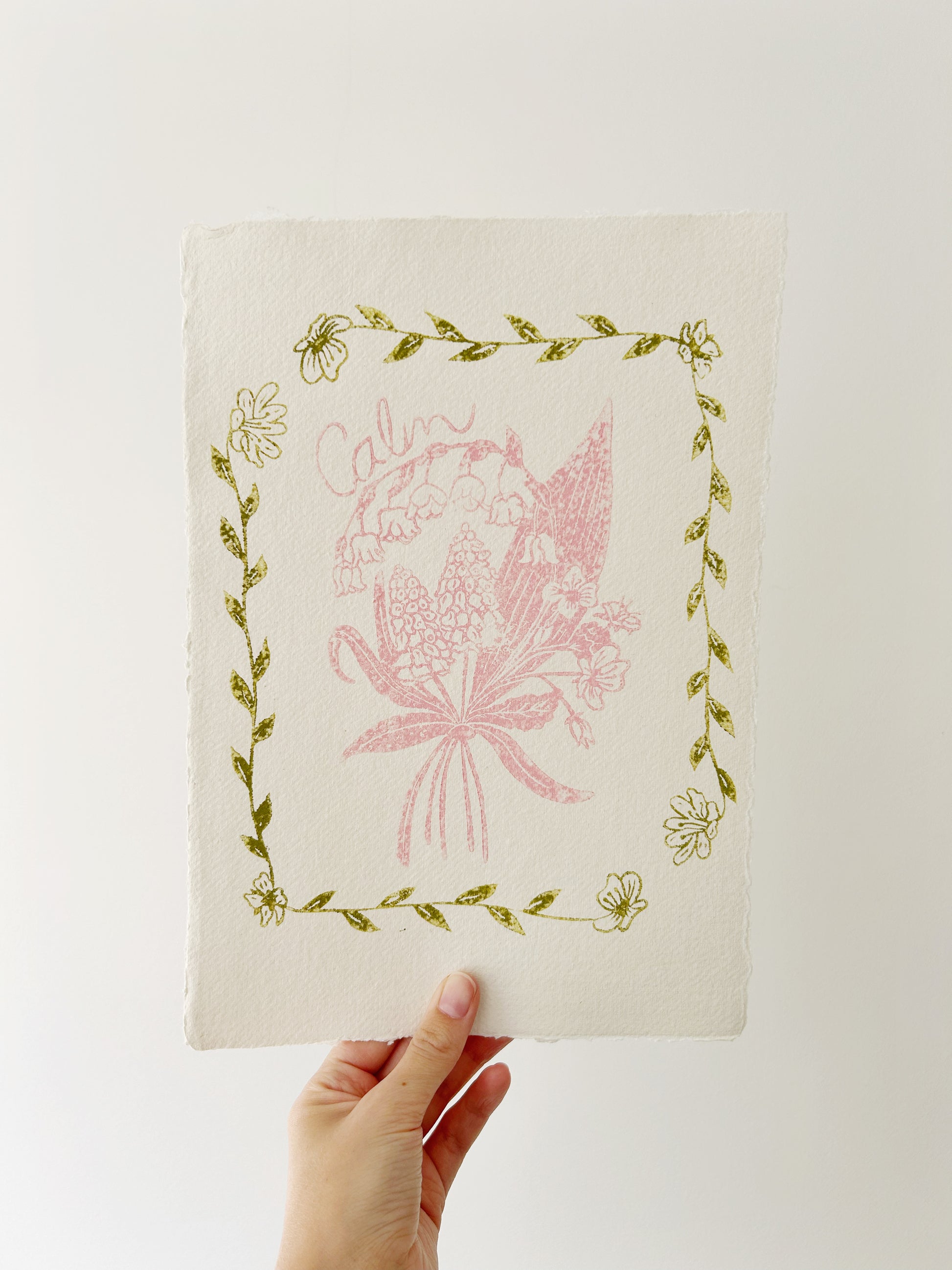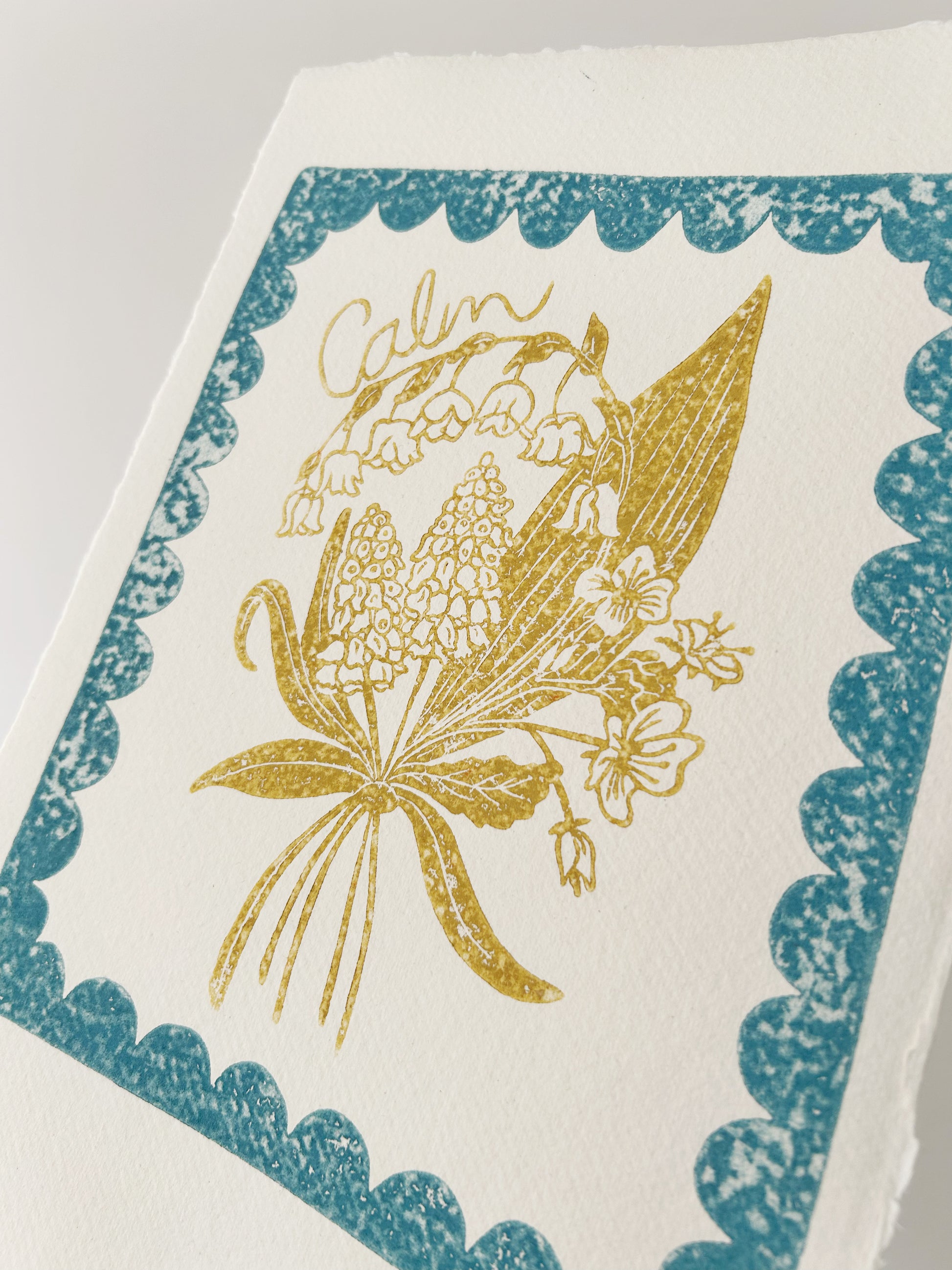 ‘Calm’ Truth Posy Original Lino Print