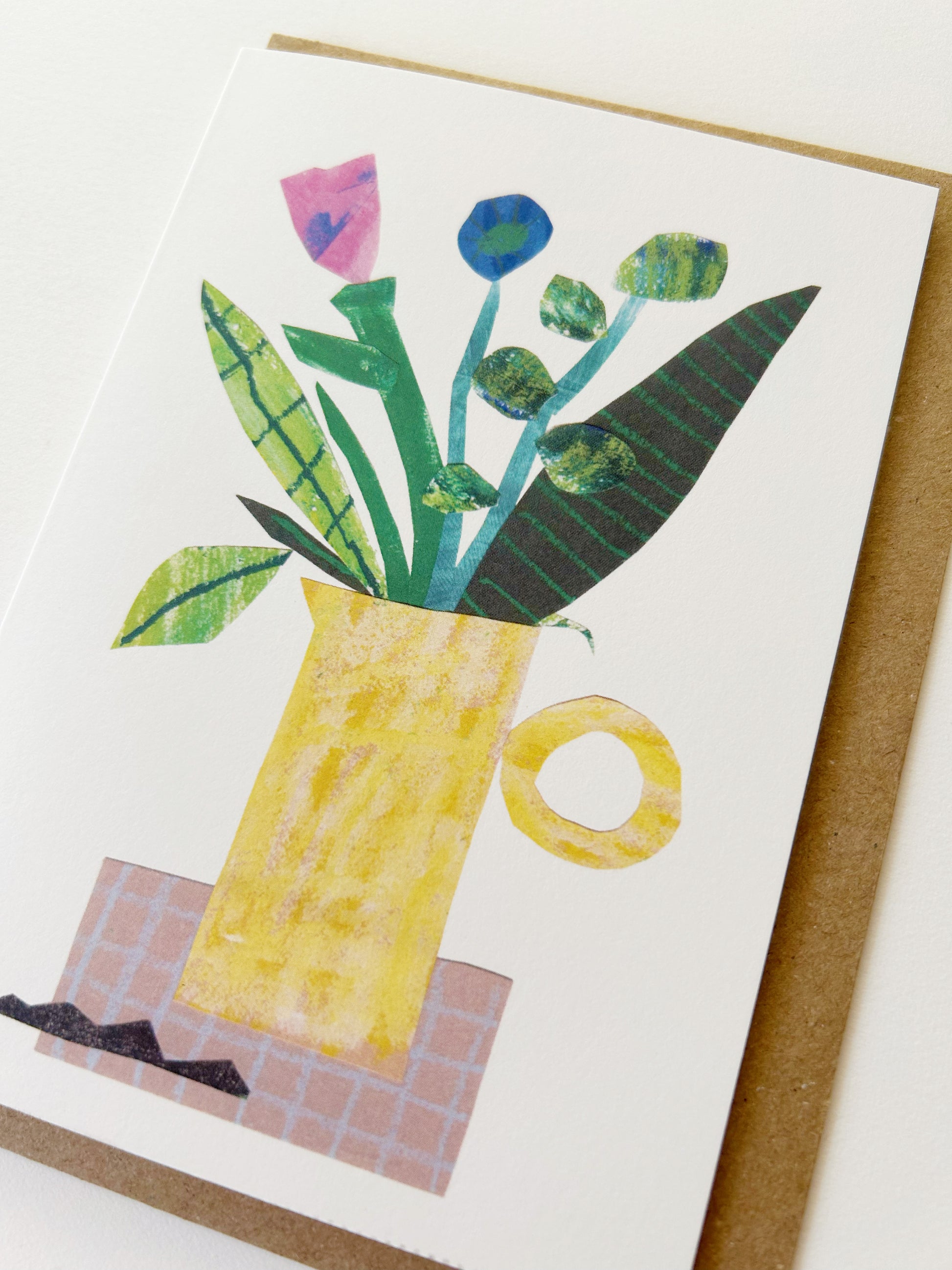 Art greetings card from Suffolk artist Hannah Tooke. Hannah is an illustrator working with mixed media, collage & cut paper, influenced by travel, nature, buildings, printmaking, childhood books & memories.