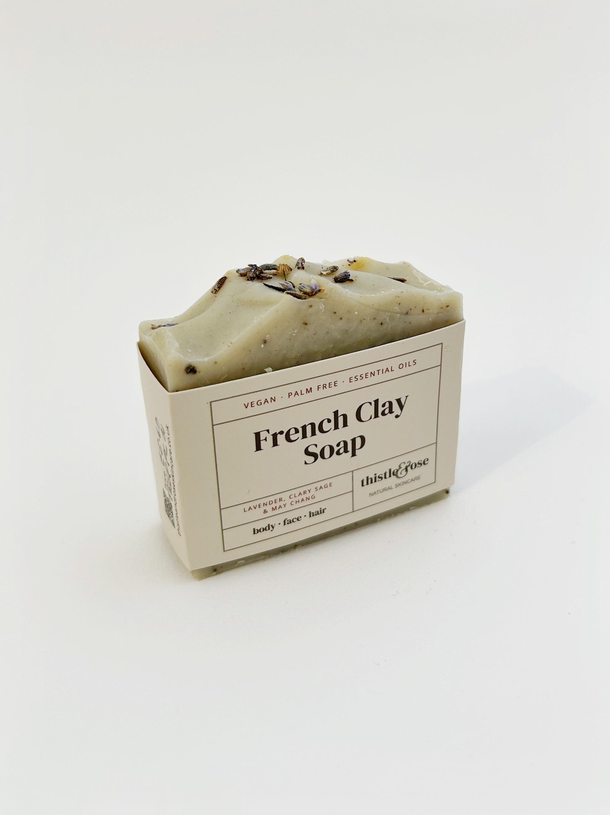 A blend of oils and butters, that are high in fatty acids and anti-oxidants, are used to create a rich and luxurious top to toe soap bar. French Clay and Coconut Yogurt are added to cleanse the skin of toxins and soothe.