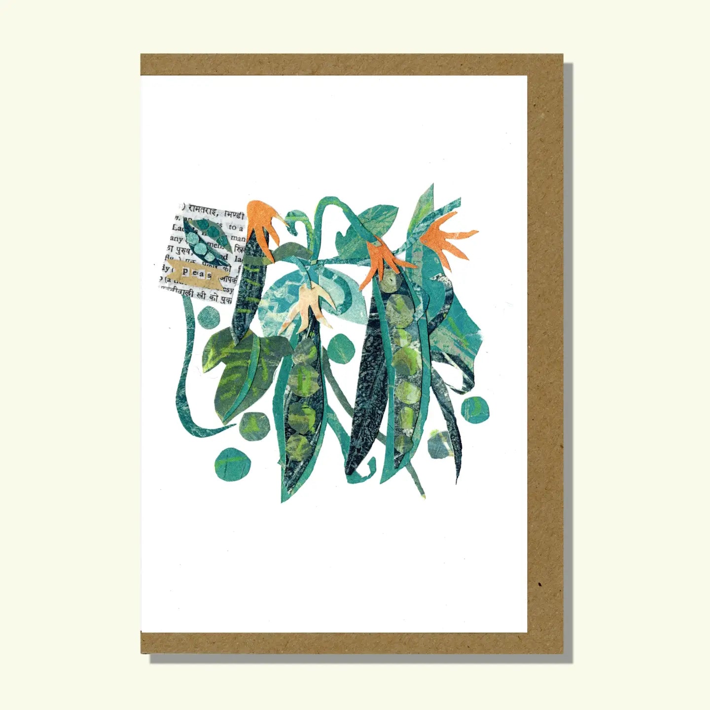 A6 single greetings card of an original collage made from monotype papers and found imagery.