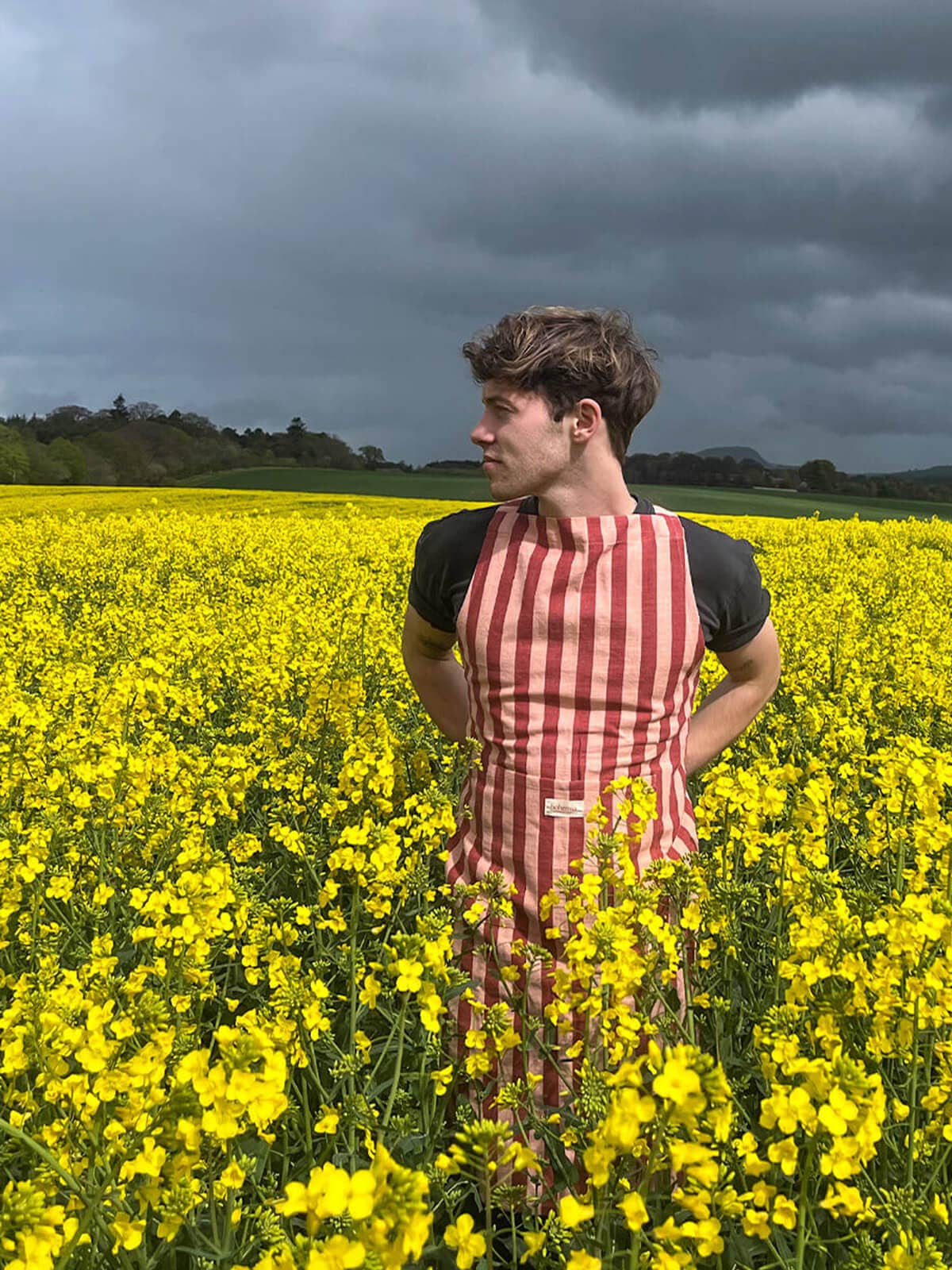 Functionality meets design with this tactile, slub cotton apron in a striking stripe screen print. The large front pocket is useful for all manner of things, keeping track of your glasses, mobile phone, or for holding kitchen utensils.