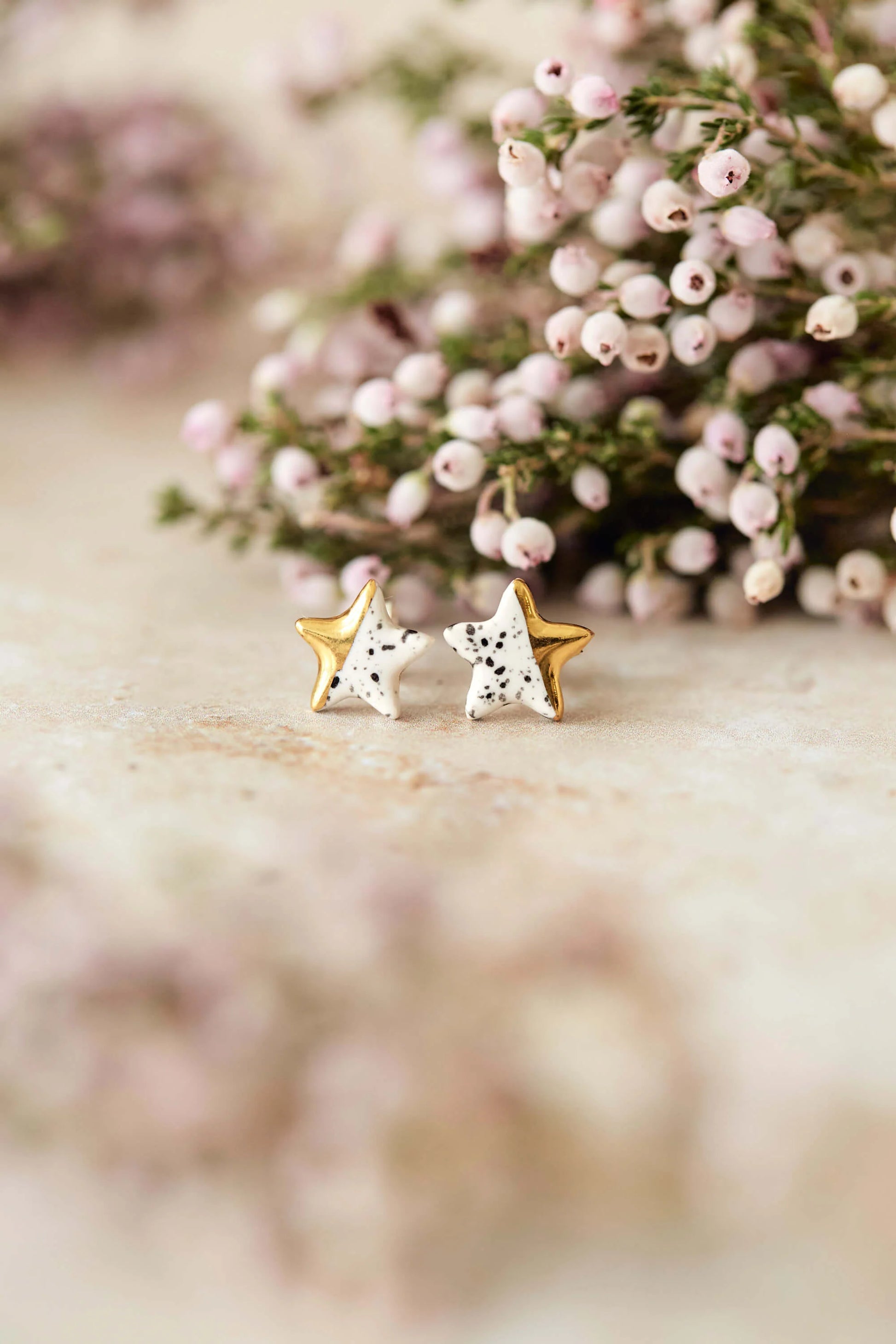 Kiln fired, white Earthenware Clay. Lead-free ceramic coloured glazes sourced in the UK. Gold lustre glaze, (essential component - dissolved metal - Gold being 22k and containing 10% gold solids) sourced in the UK.