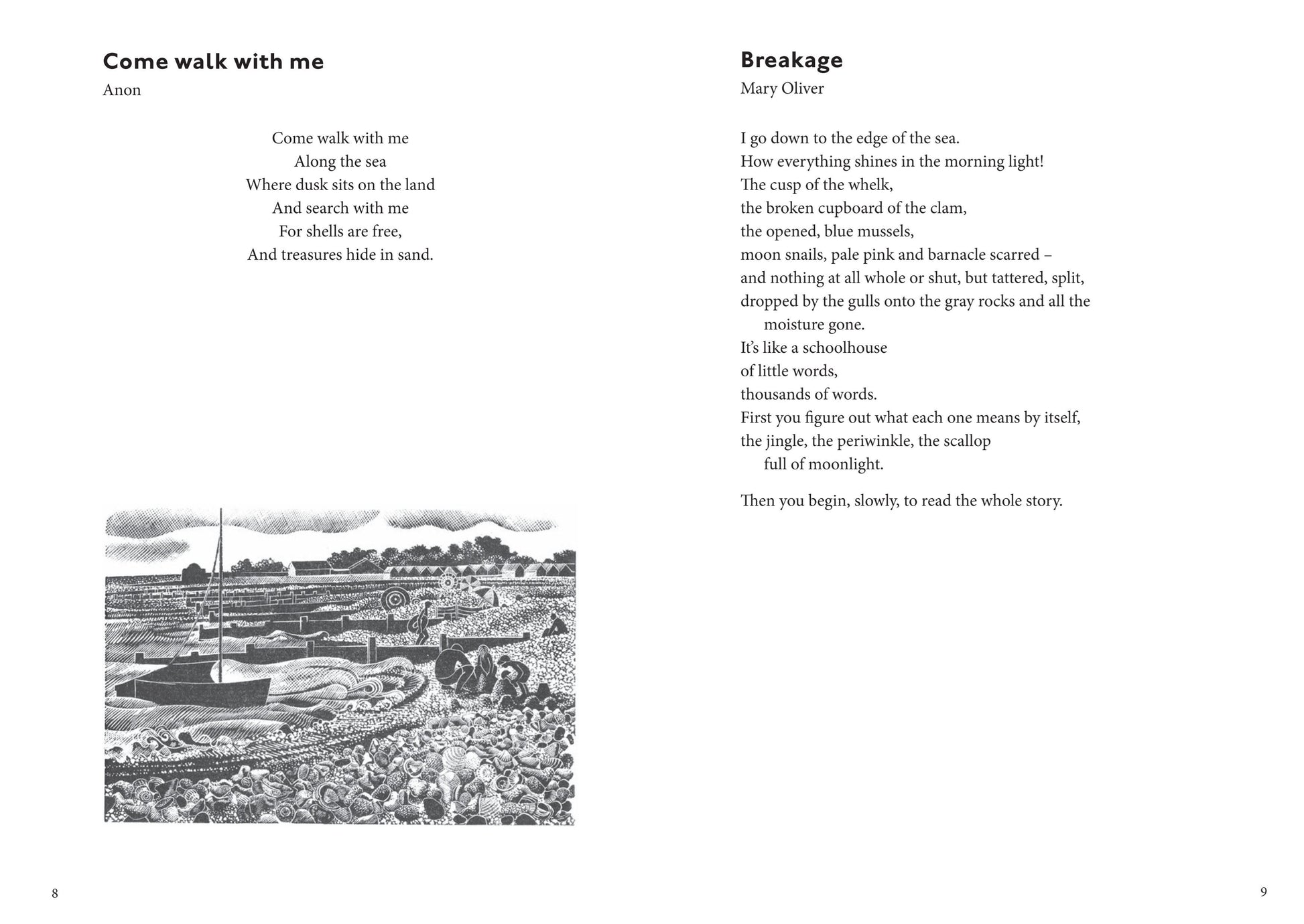 The timeless pleasures of beach-walking and beach-combing are reflected in this illustrated collection of poems about shells and pebbles, tides and rock pools, flotsam and jetsam. Perfect for everyone who loves to be beside the sea and finds it impossible to come back from the beach with empty pockets, it includes poets Mary Oliver, Gillian Clarke, W H Auden, Philip Larkin, John Betjeman, Alice Oswald, Kathleen Jamie, and Dylan Thomas. The artists featured include Anne Hayward, Diana Bloomfield, Andy English, Sarah Young, Claire Dalby and Anita Klein. Other volumes In the same series: Treelines, Washing Lines, Strings of Pearls, At Home.