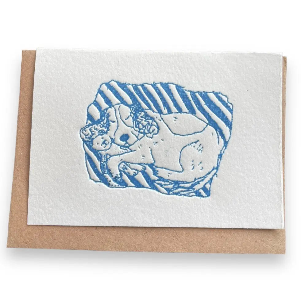 Each Sleeping Dog Greeting Card is hand embossed with colour in my studio by the sea in Cornwall. The beauty of them being produced by hand is that each one is unique and original. Measures 10.5cm x 7.5cm and hand embossed on a beautiful Italian Fabriano Paper 350gsm.