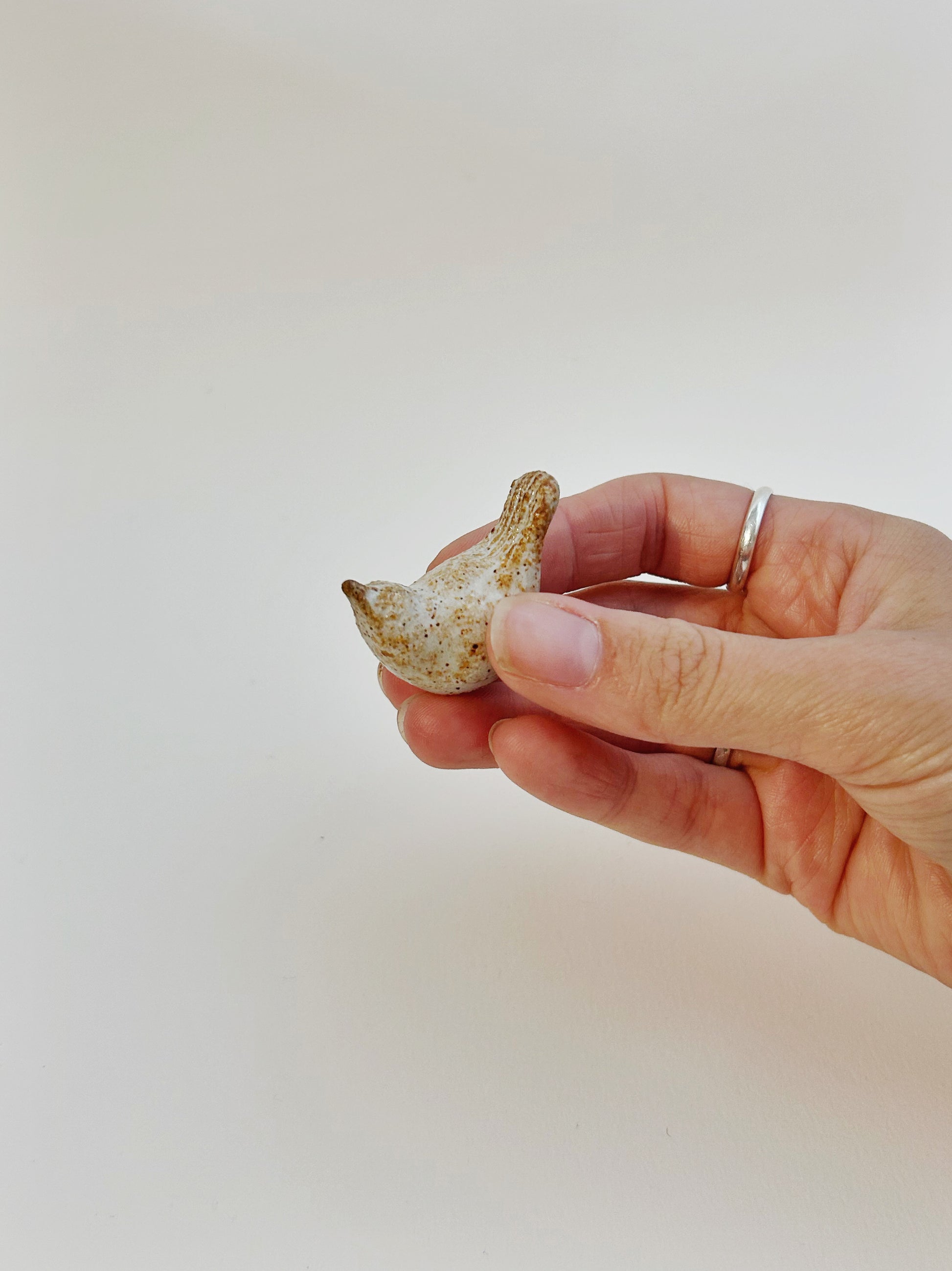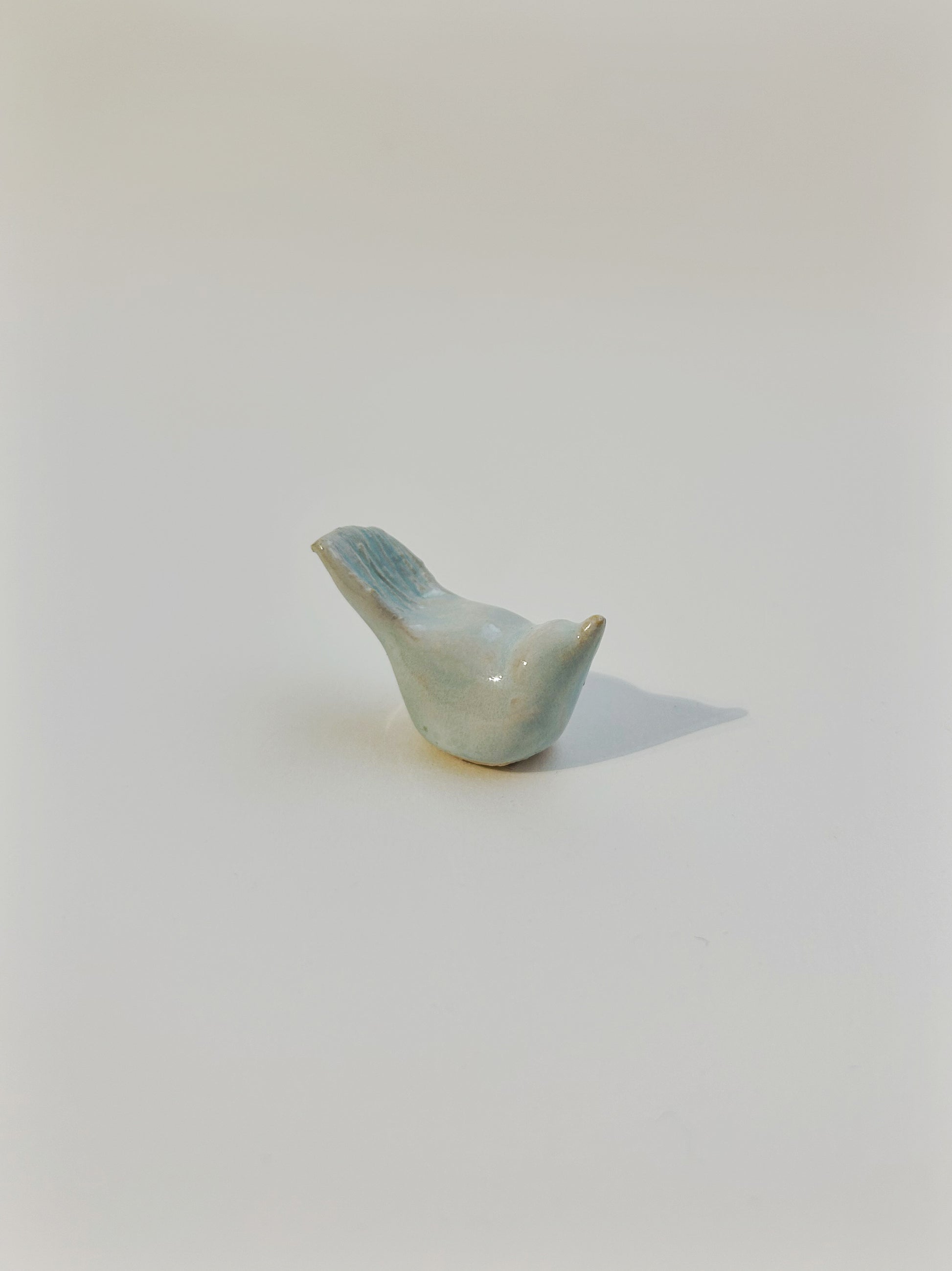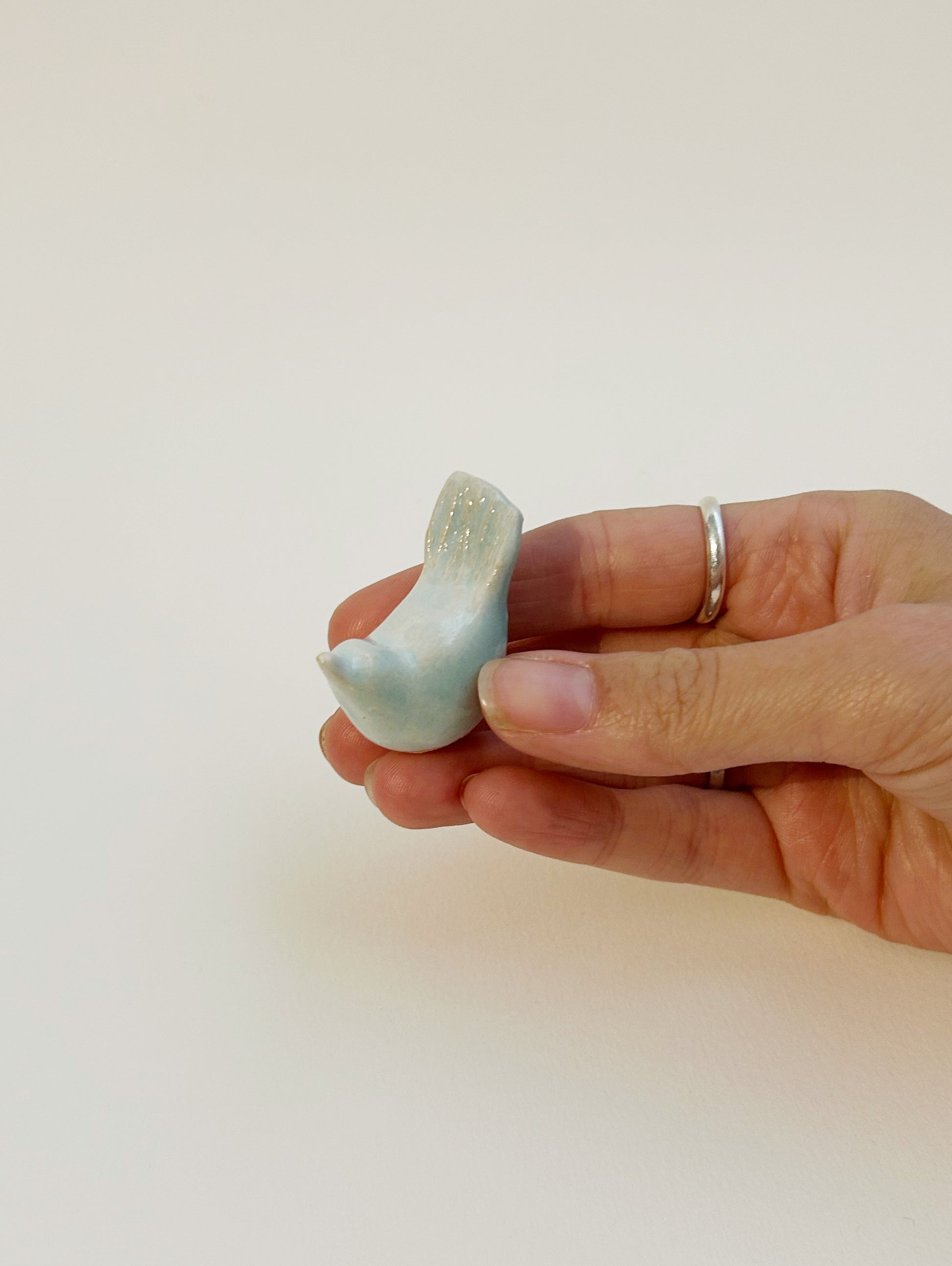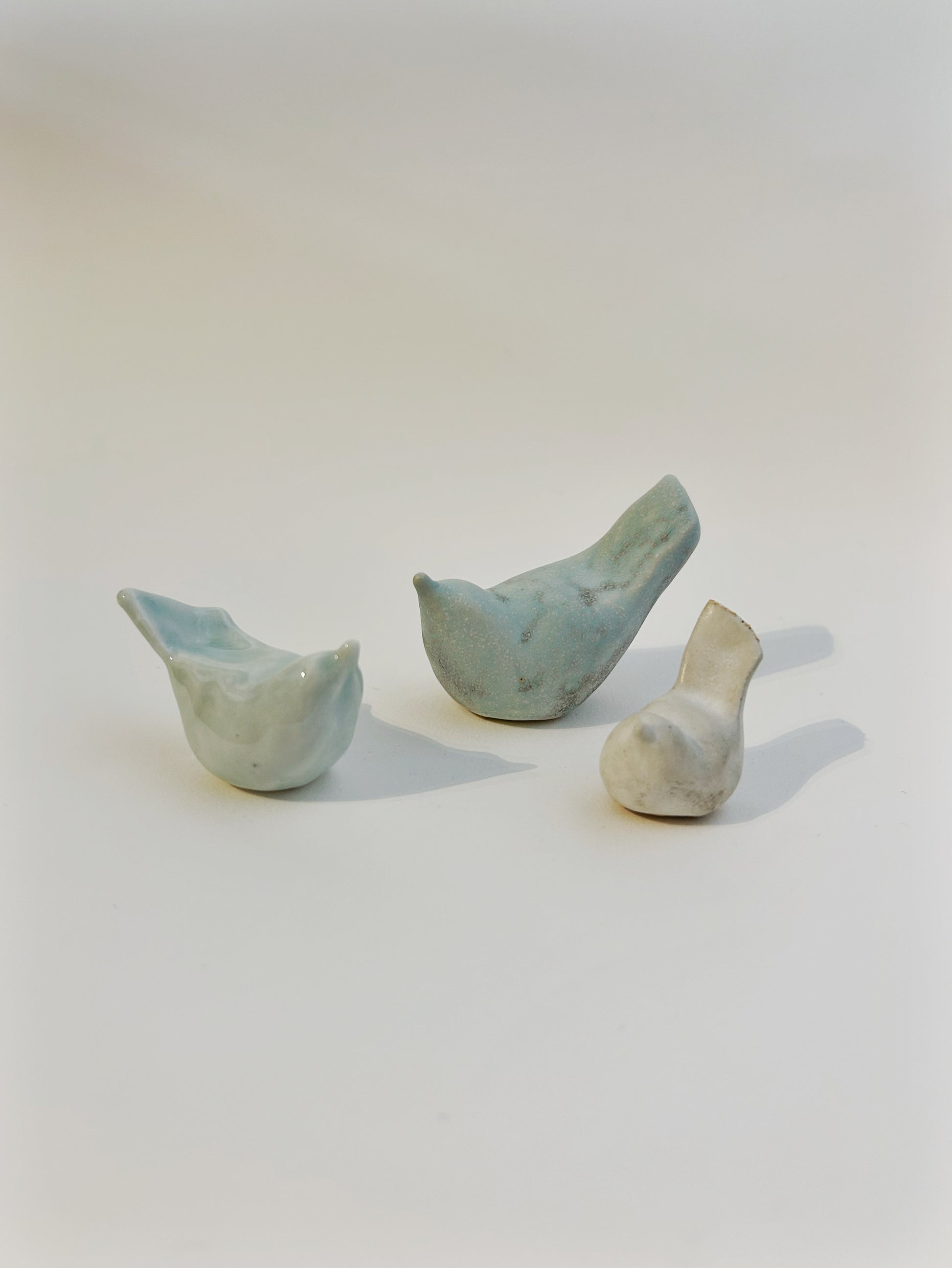 Each bird is sculpted by hand using either stone ware clay or fine porcelain. Each little bird is unique with its own character.