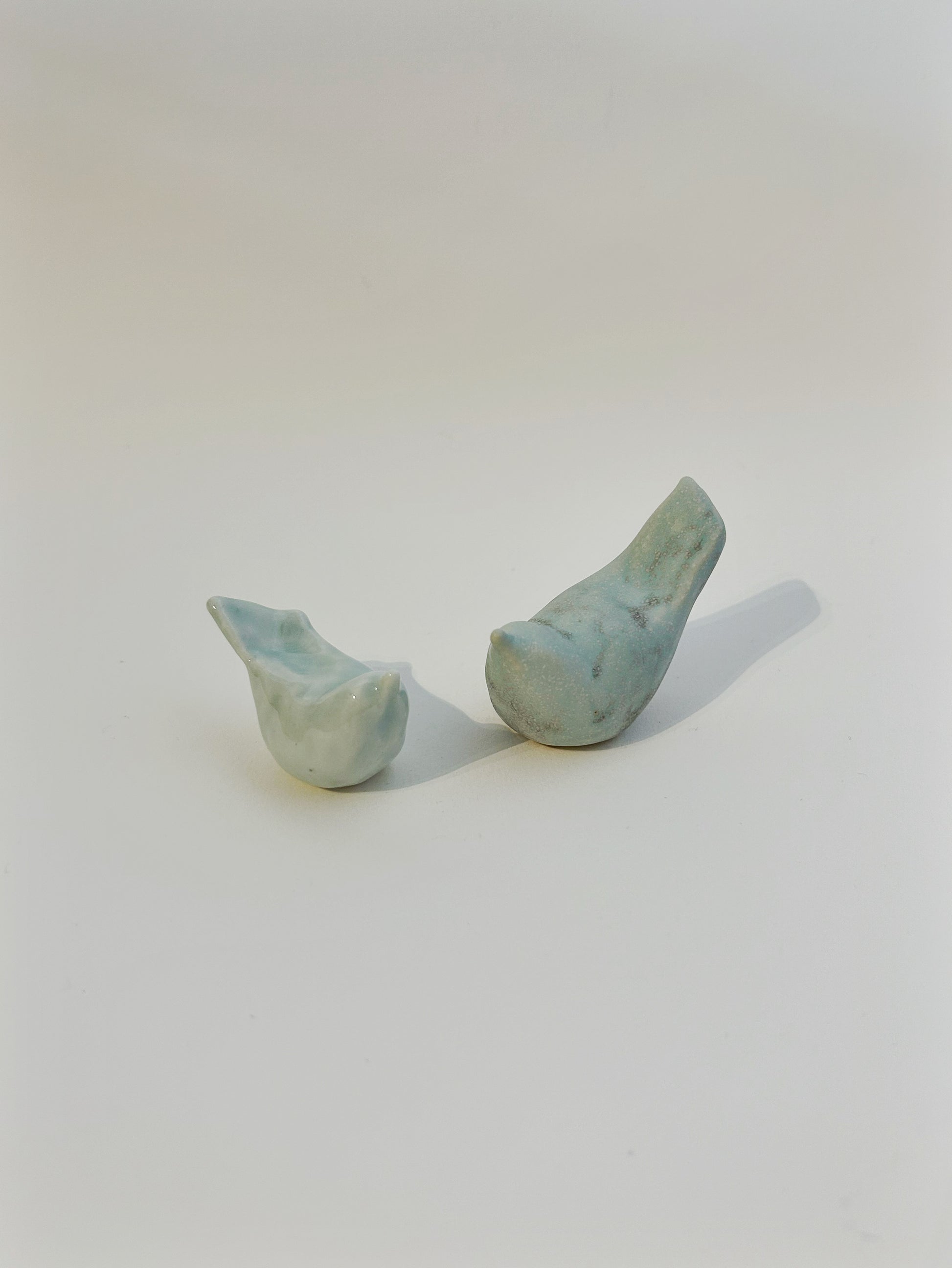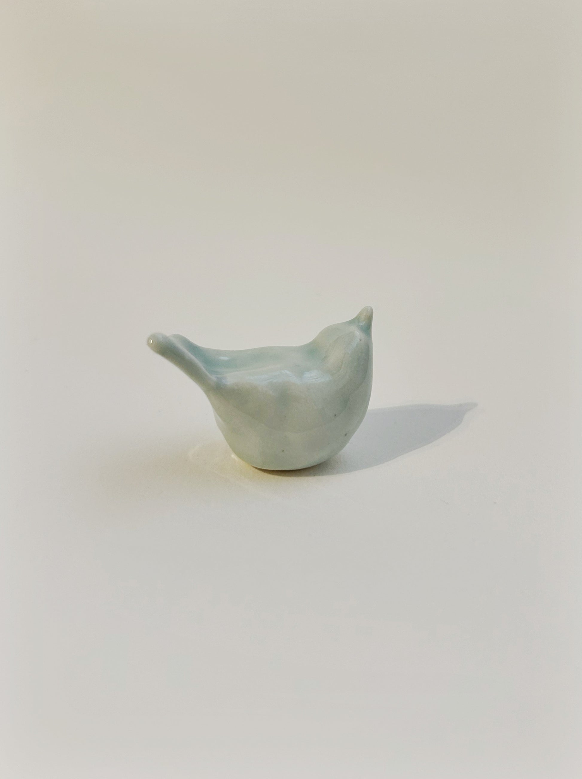 Each bird is sculpted by hand using either stone ware clay or fine porcelain. Each little bird is unique with its own character.