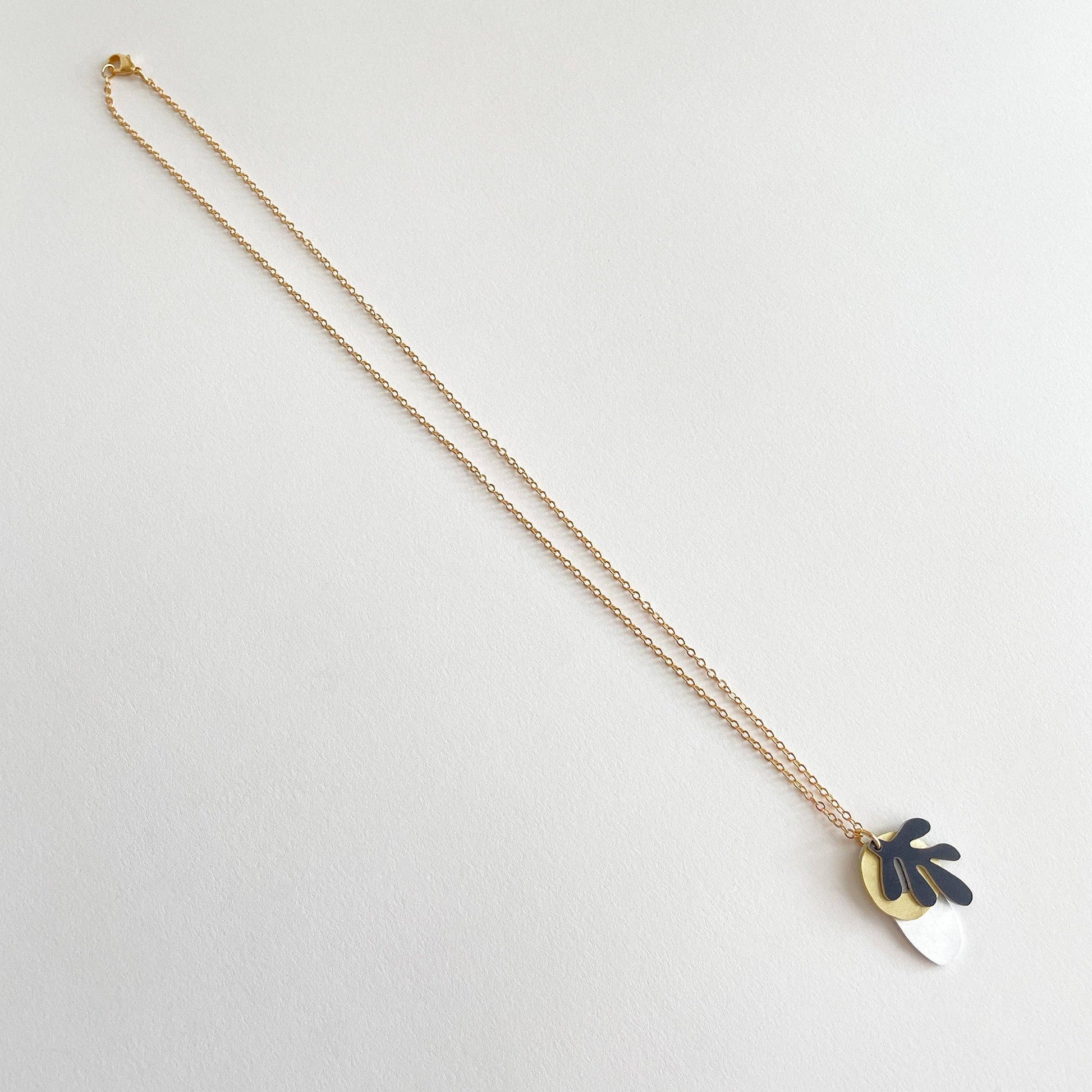 Crafted using charms in aluminium and brass, this delicate necklace has a gold plated diamond cut trace chain and is presented in a beautiful gold-foiled, black sliding box.