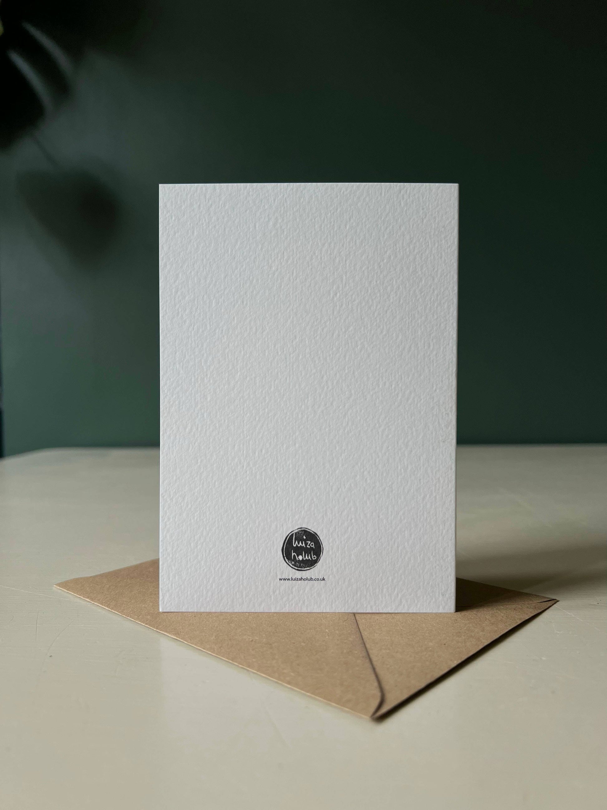 This card is a professional digital print of an original linocut print. Designed by Luiza Holub and made in the UK.